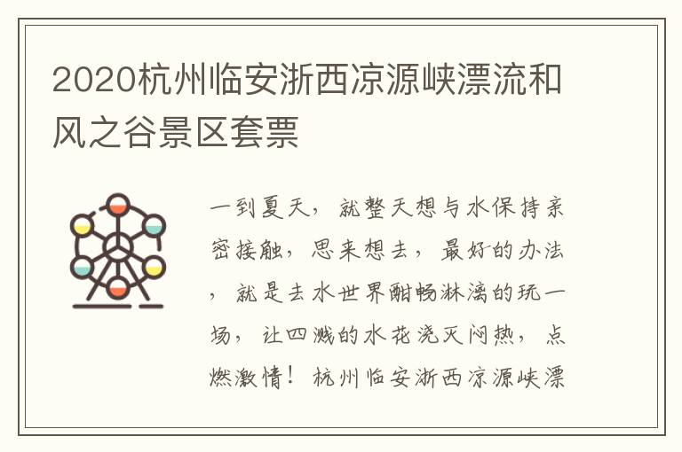 杭州临安浙西凉源峡漂流(含景交)+风之谷景区成人票